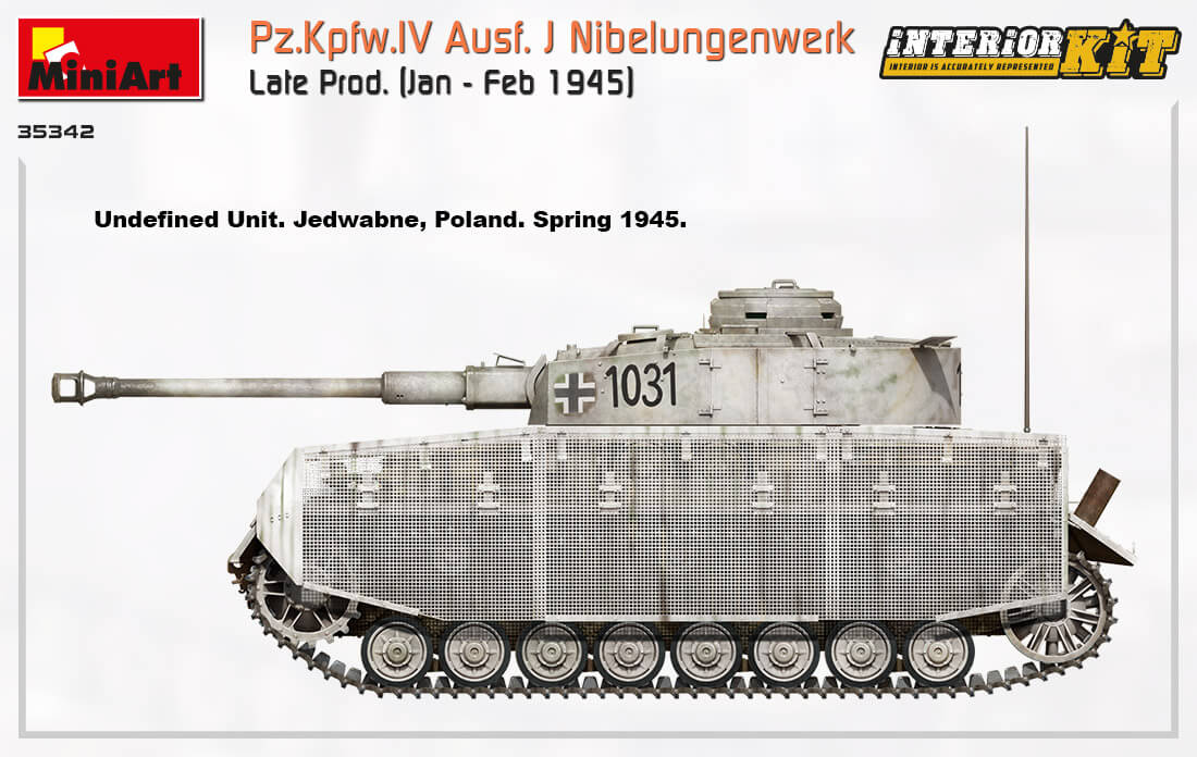 Pohled do krabičky na novinku firmy MiniArt Pz.Kpfw.IV Ausf. J Nibelungenwerk Late Prod. (Jan – Feb 1945) INTERIOR KIT v měřítku 1:35.