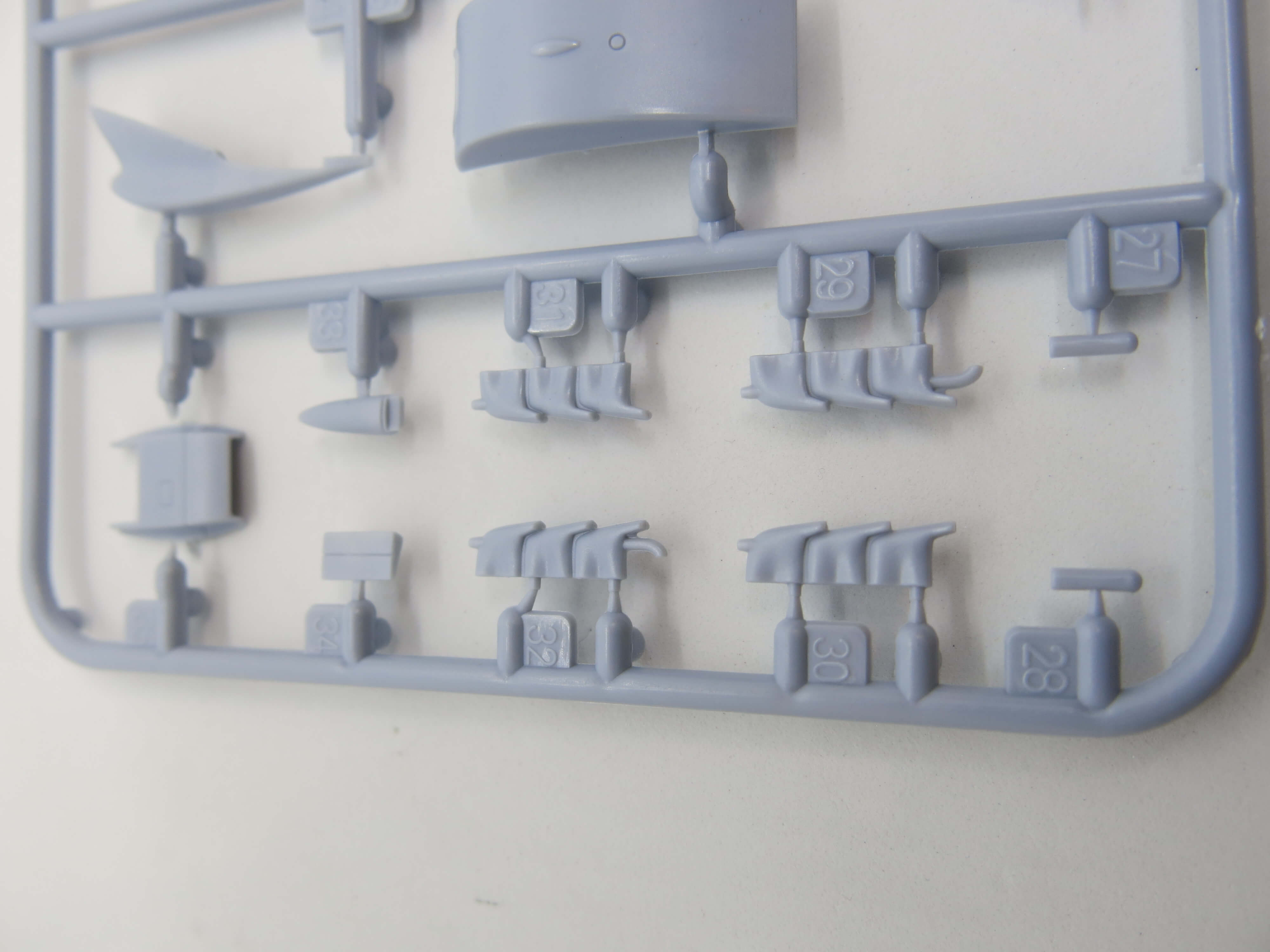 První rámeček s menšími díly obsahující jak interiér, tak i díly pro znázornění interiéru podvozkových šachet, dílů podvozku a dvou různých vrtulí. Podvozkové nohy jsou hodně tenké, samotné by model neudržely, nicméně se vlepí do žlábku v krytech podvozku a ty je zpevní.
