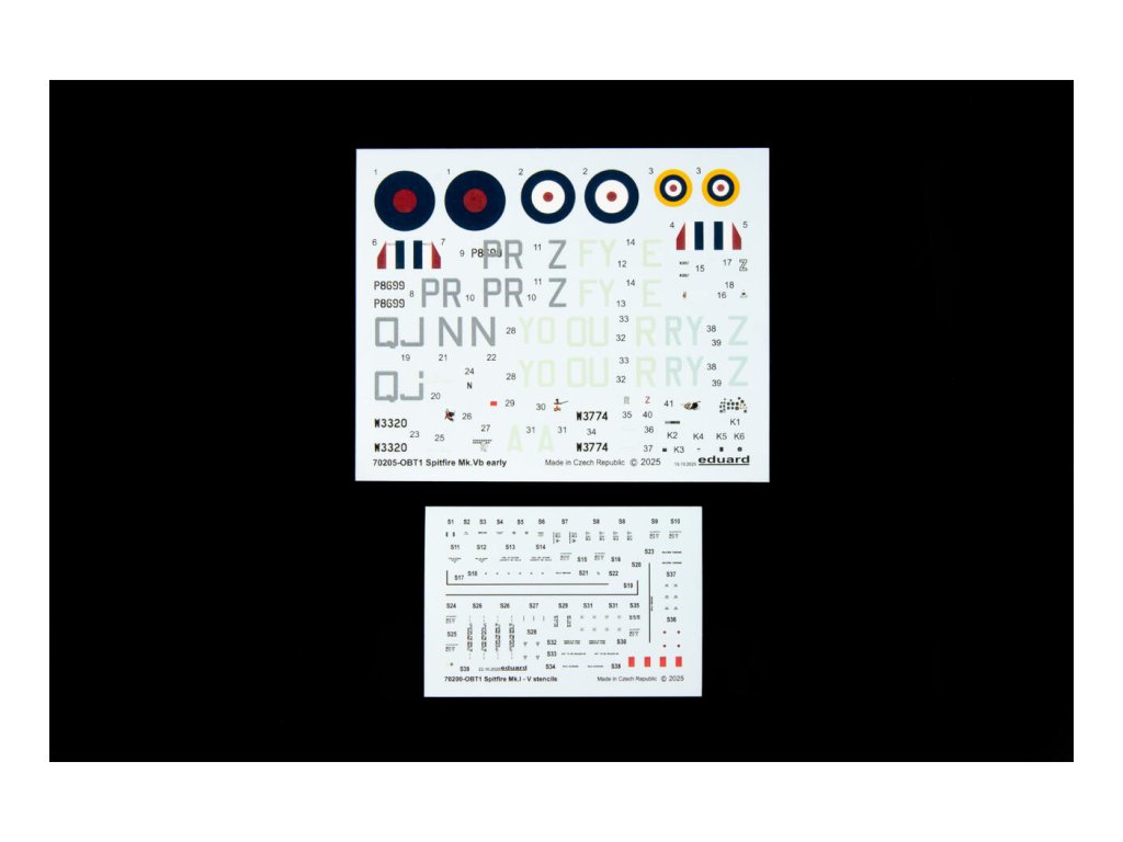 Všechny Spitfiry jsou v tzv. raném provedení s pancéřovým štítkem před čelním štítkem a symetrickými boulemi pod dolní polovinou křídla. plastové díly: Eduard počet kamuflážních schémat: 6 obtisky: Eduard leptané díly: ano barvené maska: ano resinové díly: neBe the first who will post an article to this item!