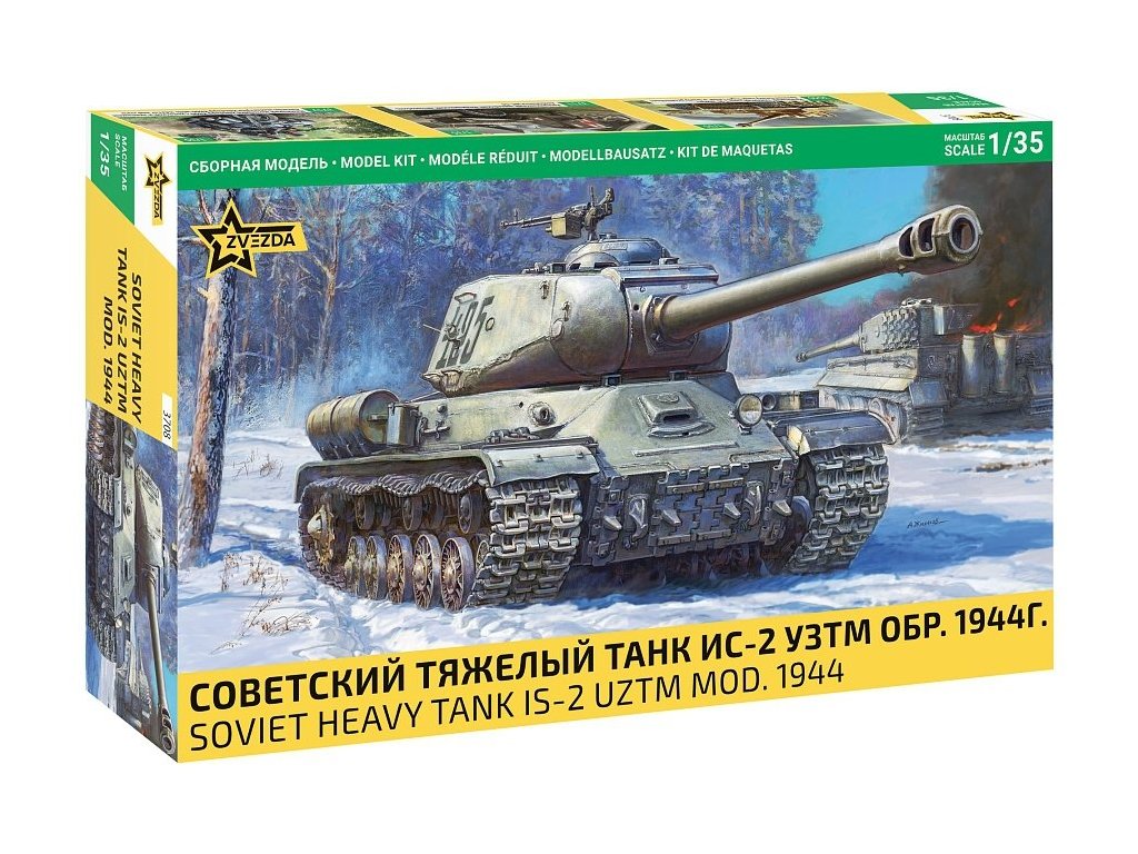 Plastiková stavebnice modelu tanku od firmy Zvezda v měřítku 1:35. Neobsahuje barvy ani lepidlo.