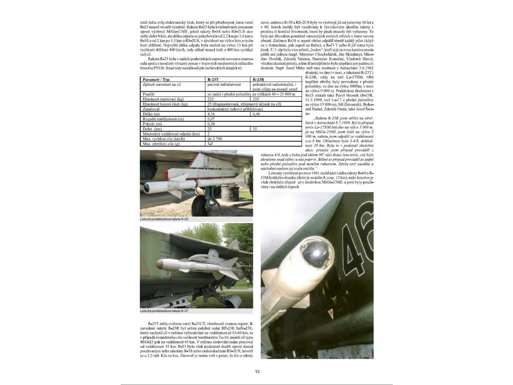 MiG-23MF byl exportní verzí MiGu-23M, který byl dodáván sovětskému letectvu, verze MF byla určena pro státy Varšavské smlouvy. Je charakterizován jakožto lehký frontový stíhací letoun, určený k vybojování vzdušné nadvlády nad bojištěm a také k přepadovému stíhání při plnění úkolů PVOS, kromě toho je schopen provádět útoky na pozemní cíle. MiG-23M byl první sovětský stíhač schopný útoku na VC za hranicí vizuálního kontaktu i na pozadí země za všech povětrnostních podmínek. Podle mnoha odborníků byl nadřazen Phantomu II ve všech výkonových parametrech i v efektivitě výzbroje, což ovšem může být předmětem diskuse. Do výzbroje našeho letectva byly zařazeny v roce 1978. Kniha popisuje tento stroj, jeho výzbroj, přecvičení našich pilotů a službu těchto strojů až do jejich vyřazení.Doplňkové parametry