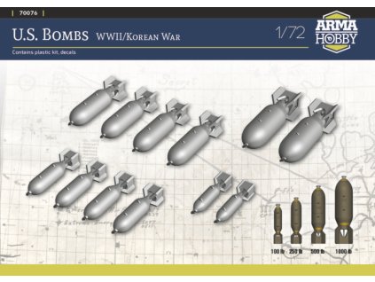 Plastiková stavebnice modelu letadlových bomb od firmy Arma Hobby v měřítku 1:72. Neobsahuje barvy ani lepidlo.