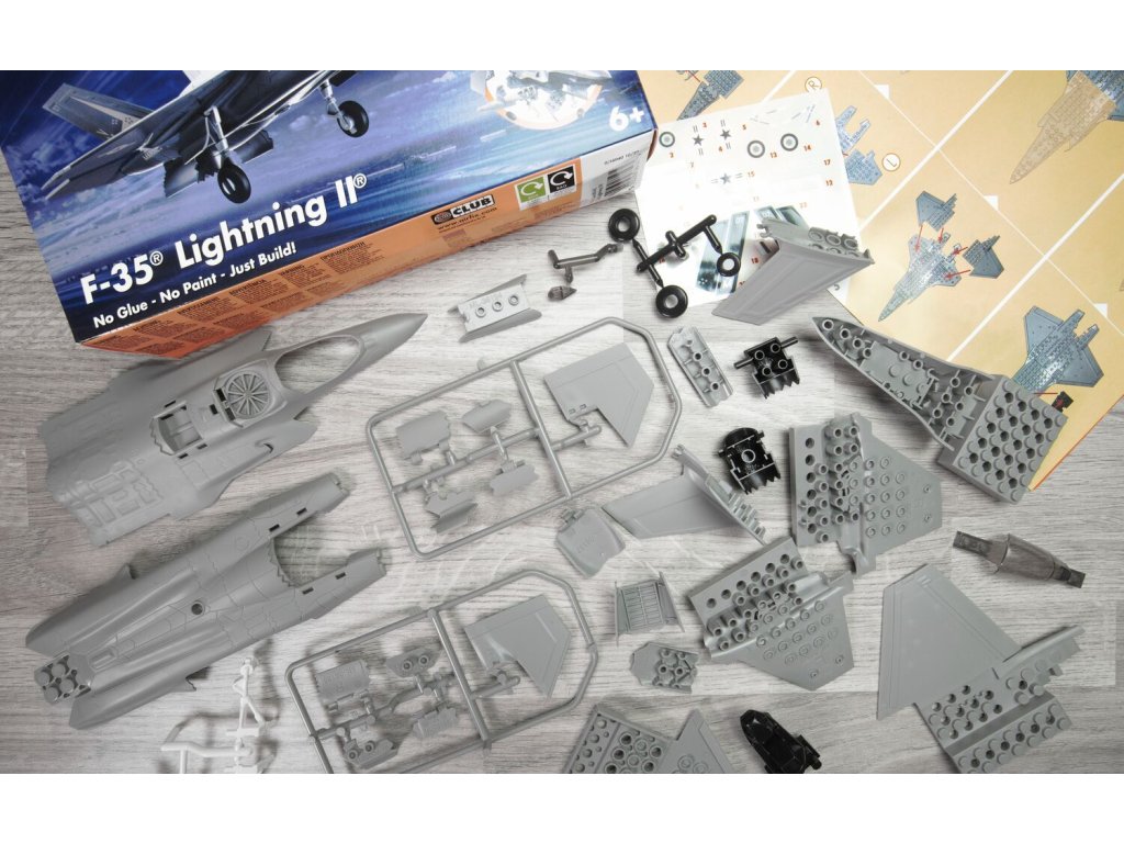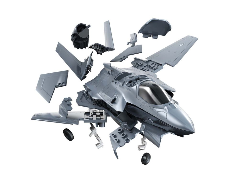Airfix QUICKBUILD je vzrušující řada modelů z kostek vhodných jako úvod do modelování pro všechny věkové kategorie od 6 let. Předbarvené dílky se jednoduše spojí a vytvoří působivý model, který lze poté ozdobit přiloženými samolepicími nálepkami. K tomu, aby tyto fantastické modely vypadaly jako skutečné, není potřeba žádná barva ani lepidlo a po dokončení nejsou vidět žádné kostkové díly. Po sestavení jsou dostatečně odolné na to, aby se daly použít jako hračky, nebo dostatečně chytré na to, aby se daly použít jako výstavní modely. Obojí předvede vaše skvělé modelářské dovednosti! Součástí každého modelu je kompletní sada snadno srozumitelných barevných návodů, volně se otáčející kola pro auta a tanky a výstavní stojany pro všechna letadla. F-35B Lightning II F-35 je jednomístný, jednomotorový nadzvukový proudový letoun s nejmodernějšími počítači a síťovými schopnostmi, které se dosud nevznesly do vzduchu, a se schopností stealth, která je navržena tak, aby byl obtížně odhalen nepřátelským radarem. Varianta F-35B, která má nosný ventilátor namontovaný za kokpitem, umožňuje tomuto letounu krátký vzlet a vertikální přistání (STOVL), což znamená, že se může vznášet jako Harrier. F-35, který bude spolupracovat s Typhoonem, bude operovat ze země, ale co je nejdůležitější, bude létat ze dvou nových letadlových lodí Královského námořnictva Queen Elizabeth.Doplňkové parametry