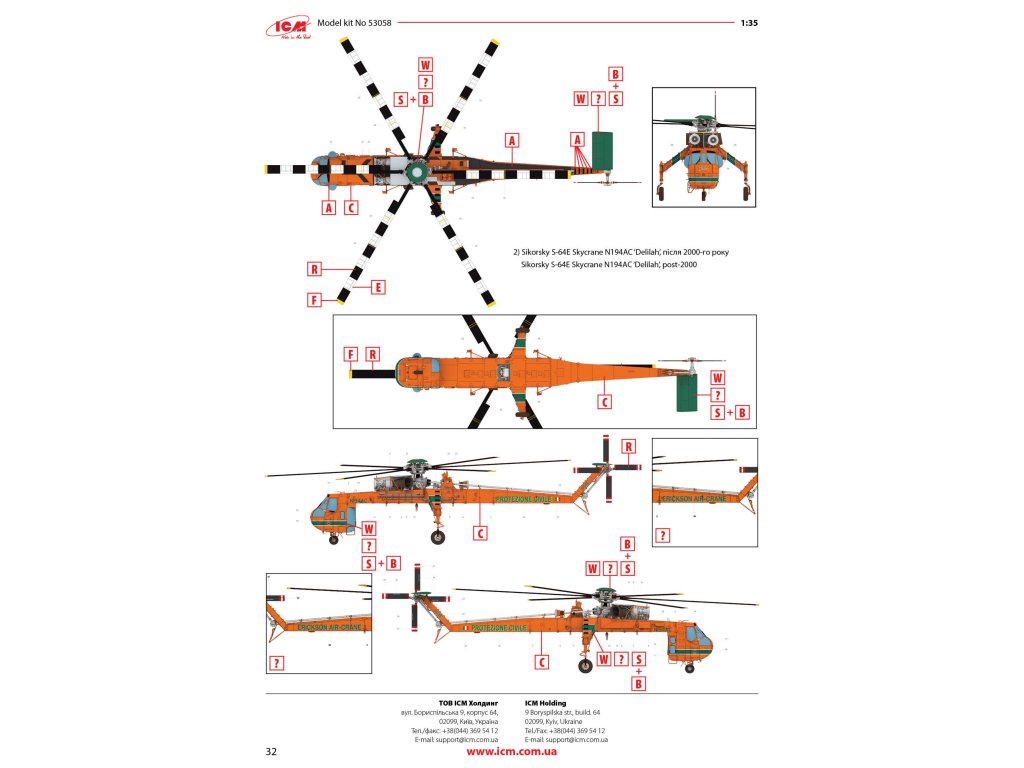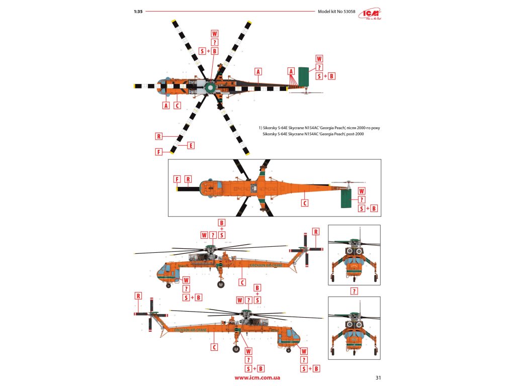 Sikorsky S-64E Skycrane je civilní verze těžkého dvoumotorového vojenského vrtulníku CH-54A Tarhe. Vojenská varianta byla široce používána během války ve Vietnamu k přepravě těžkého nákladu, od dělostřeleckých zbraní až po bojové čluny. S-64E má šestilistý rotor a dva motory Pratt & Whitney. Má celokovový trup a třímístnou kabinu pro posádku se dvěma pilotními sedadly vedle sebe a samostatným sedadlem řidiče. Sedadlo řidiče je otočeno dozadu pod úhlem 180°, což umožňuje sledování nákladu přes průhlednou zadní stěnu během nakládacích operací. Tento všestranný vrtulník plní řadu funkcí po celém světě: záchranné operace, hašení požárů pro záchranné složky, stavební práce, přepravu těžkého nákladu a těžbu dřeva. Většina S-64 má na nose jedinečná jména. Letoun dosáhl pozoruhodných rekordů, včetně nejvyšší horizontální výšky letu (11 km) a nejrychlejší rychlosti stoupání do různých výšek (3, 6 a 9 km).Diskuze